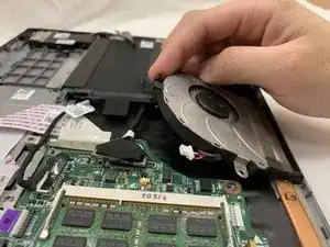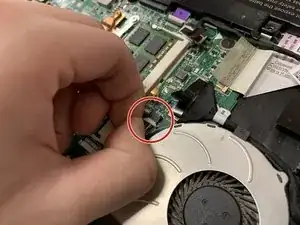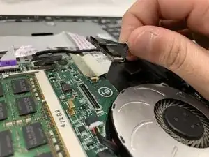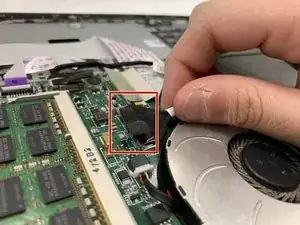 Отделите кабель, который соединяет вентилятор и материнскую плату.