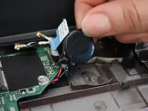 Таблеточная батарейка находится под оптическим приводом.