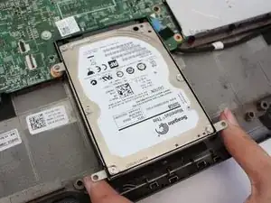 Поднимите нижнюю часть жёсткого диска, который находится в нижней части ноутбука.