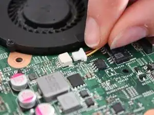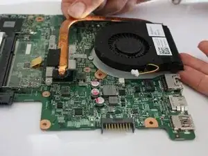 Снимите вентилятор с материнской платы, поднимая его вверх.