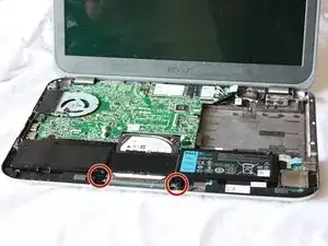 Если затрудняетесь с подъёмом, возможно, вы не открутили все 7 винтов на нижней стороне компьютера.
