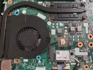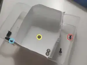 Вверните обратно 2 винта M2.5 x 8 мм в отмеченные синим кругом отверстия.
