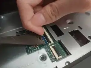 Используя эти зазоры, медленно отделите левую часть ноутбука.