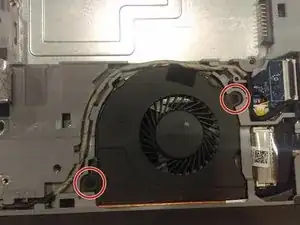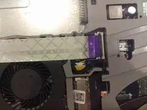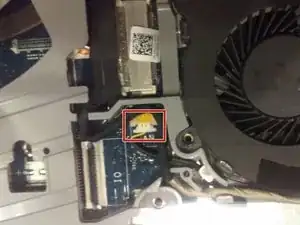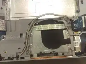 После того, как вы отключили вентилятор от материнской платы, вы можете удалить вентилятор из посадочного места. Ваш ноутбук теперь должен выглядеть подобно изображению на этом шаге.