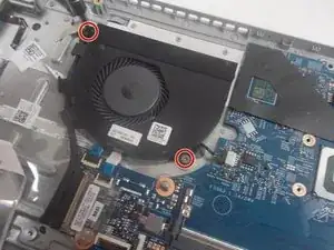 Снимите два винта 3,5 мм, удерживающие вентилятор, с помощью отвёртки JIS #0.