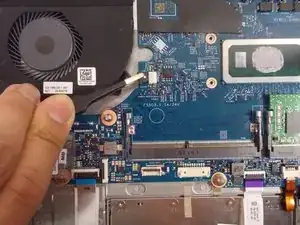 Отсоедините разъём материнской платы от верхнего левого края батареи.