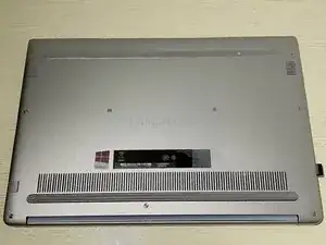 Положите ноутбук так, чтобы нижняя часть была обращена вверх.