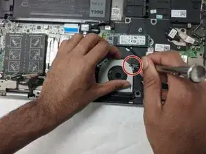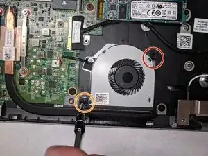 Удалите винты длиной 3.7 мм, которые удерживают вентилятор на месте, с помощью отвертки Philips #0.