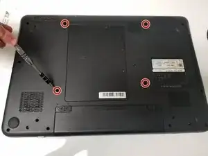 Снимите крышку, чтобы получить доступ к внутренним компонентам ноутбука.