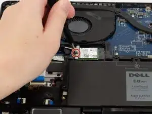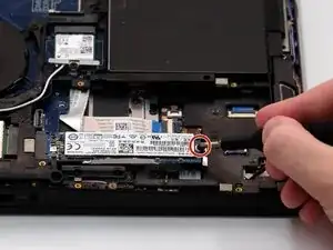 Снимите единственный винт 4 мм, крепящий заднюю часть SSD к корпусу, используя отвертку Phillips #0.