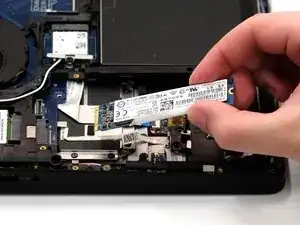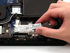 Осторожно выдвиньте SSD прямо наружу со стороны заднего корпуса, от конца, где ранее был винт.