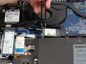 Аккуратно выньте WLAN-карту со задней стороны, с конца, где находятся антенны и крепление.