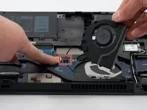 Используйте крестовую отвёртку Phillips #00, чтобы удалить два винта 3.1 мм, удерживающих вентилятор.