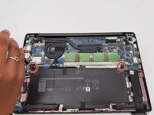 Используйте отвертку Phillips #0, чтобы ослабить два винта диаметром 3 мм, которые крепят батарею.