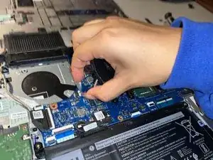 Во время выполнения работ осторожно прикладывайте усилие к элементам на материнской плате. Чрезмерное давление может повредить важный компонент ноутбука.