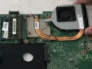 Приподнимите материнскую плату, чтобы вынуть ее из корпуса ноутбука.