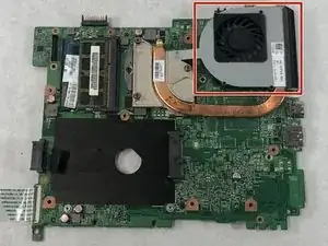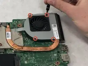 Удалите четыре шурупа Phillips #0 длиной 5 мм, которые удерживают вентилятор на материнской плате.