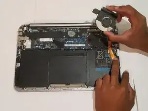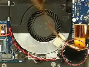 Это руководство описывает замену вентилятора системы охлаждения в Dell XPS 12 9Q23. Вентилятор продувает воздух через тепловые трубки радиатора, что обеспечивает охлаждение процессора.