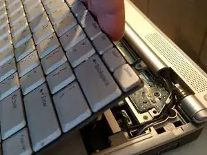 Снимите три винта с крестообразной головкой в верхней части клавиатуры.
