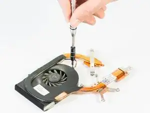 Переверните радиатор, чтобы снять четыре винта Phillips #000 3.2 мм, соединяющие радиатор с вентилятором.