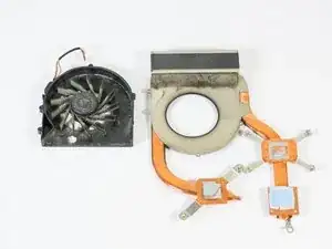 Осторожно поднимите вентилятор и радиатор из ноутбука.