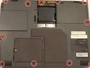 Отверткой Phillips #1 снимите одиннадцать винтов длиной 1 см, расположенных по периметру края ноутбука.