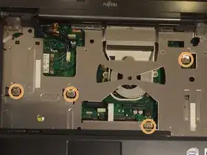 Отверткой Phillips #1 отвинтите четыре винта длиной 6 мм, расположенные вокруг материнской платы.