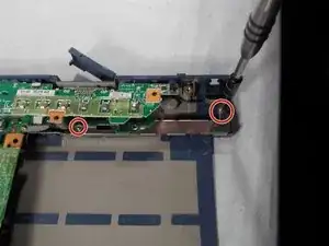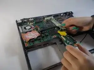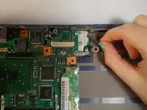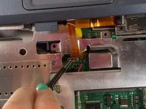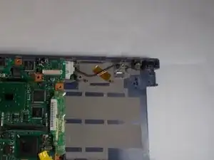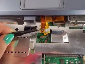 Пинцетом отсоедините кабели крышки шарнира от материнской платы.