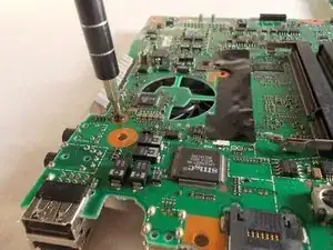 С помощью крестовой отвёртки размера #0 выкрутите винт 3 мм на обратной стороне материнской платы.