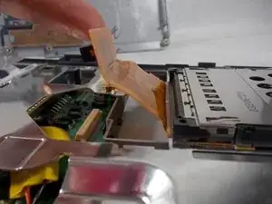 Используйте пинцет, чтобы отсоединить шлейф от материнской платы.