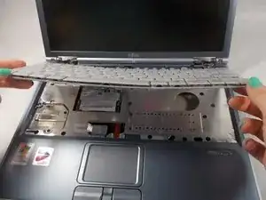 Поднимите клавиатуру достаточно, чтобы увидеть шлейф.