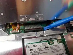 Используйте пластиковый демонтажный инструмент, чтобы освободить шлейф от материнской платы.