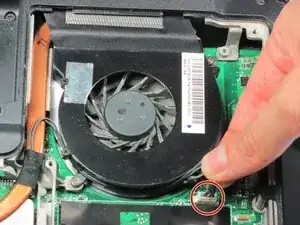 Отсоедините кабель питания вентилятора, который представляет собой группу черных проводов, прикрепленных к белому пластиковому разъему на материнской плате.