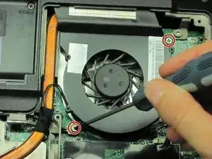 Удалите два винта, расположенные по противоположным сторонам вентилятора, с помощью отвертки Philips #00.