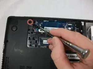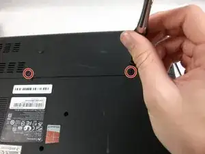 Отверните три крестообразных винта Phillips 01 длиной 10 мм на задней панели ноутбука.