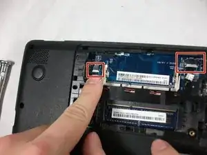 Вытяните аккумулятор из ноутбука, чтобы снять его.