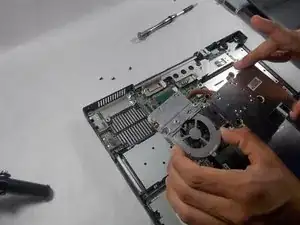 Поскольку сборка больше не закреплена к внутренней части ноутбука, извлеките весь блок вентилятора из корпуса.