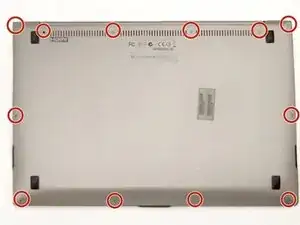 Открутите двенадцать винтов нижней панели длиной 3 мм с помощью отвёртки Torx T5.