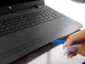 Переверните компьютер обратно и используйте инструмент для открытия, чтобы приподнять клавиатуру с нижней части компьютера.