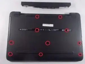 Используя отвертку Phillips, удалите 10 винтов на нижней крышке.