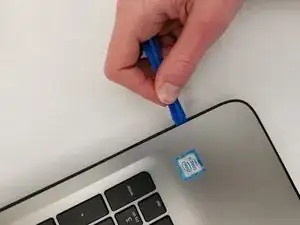 Отсоедините панель клавиатуры от основания, воспользовавшись инструментом iFixit для вскрытия, пройдя по всему периметру.