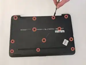 Снимите резиновые ножки с нижней части устройства, чтобы получить доступ ко всем винтам.