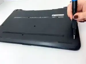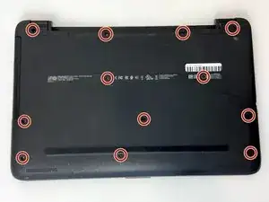 Снимите крестовой отвёрткой Phillips №0 двенадцать винтов Phillips 8 мм, которые держат нижнюю крышку ноутбука.