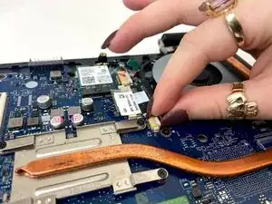 Осторожно извлеките весь вентилятор из основания ноутбука.