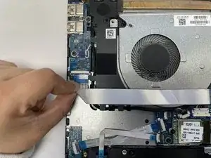 Осторожно сдвиньте ленточный кабель из разъёма.