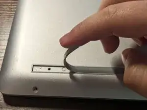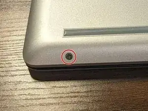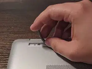 Закройте экран и переверните ноутбук так, чтобы нижняя часть была сверху.
