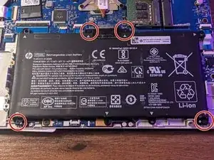 Крестовой отвёрткой выкрутите четыре винта, фиксирующие аккумулятор.