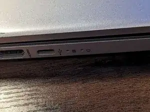 Индикатор на левой стороне основания ноутбука показывает, включён ли ноутбук или выключен.