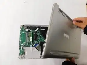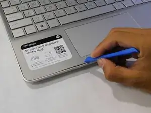 Если вы можете приподнять ноутбук, как показано на первой фотографии, нижняя панель почти отделена.