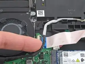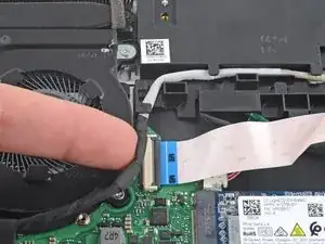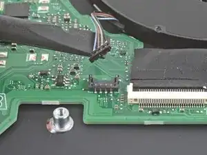 Участок кабеля дисплея перекрывает один из винтов, закрепляющих вентилятор.
